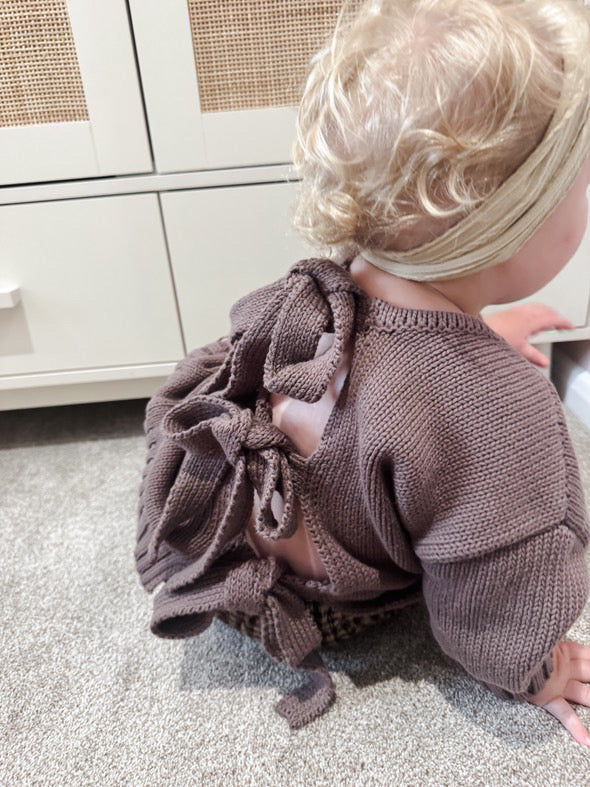 A soft knit for quiet days. Our oversized, back tie jumper is crafted from 100% cotton with an open-back design. A piece to wear, tie, and pass along.